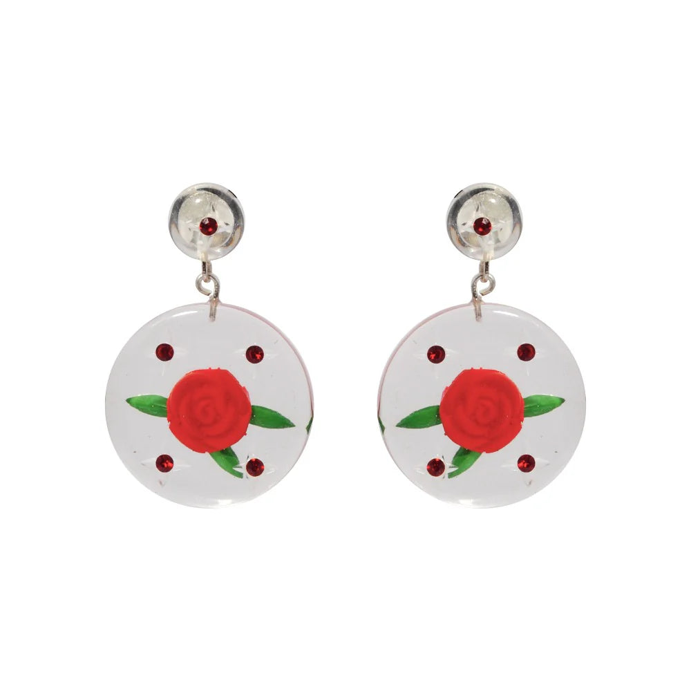 Les boucles d’oreilles Lover's Knot incarne le romantisme classique avec une touche vintage. La résine transparente révèle une rose rouge épanouie , des feuilles sculptées à l'envers et de pierres précieuses colorées et de détails délicatement sculptés.
