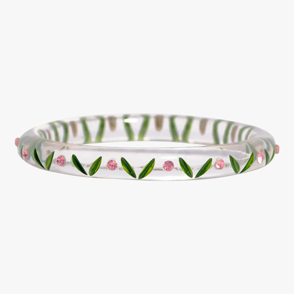 Le bracelet Sweet Juliet incarne le romantisme classique avec une touche vintage. La résine transparente révèle des feuilles sculptées à l'envers, de pierres précieuses colorées et de détails délicatement sculptés.